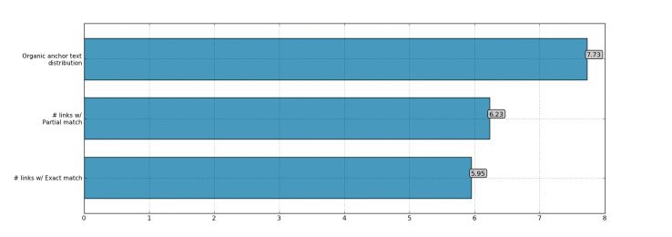 過去的兩年,Google對過分優化錨文本進行了嚴厲的打擊,但是從數據中發現,無論是部分匹配還是精準匹配,錨文本的相關度依然非常高。